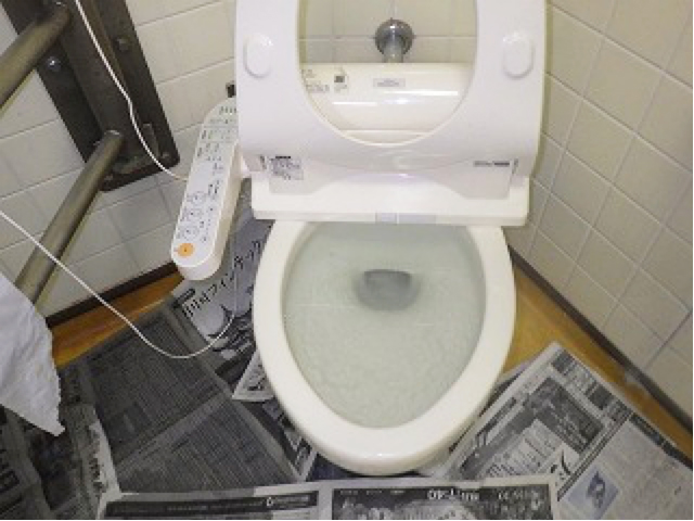 今回のトイレ詰まりの原因は尿取りパットでした。病院や老人施設に多い事案です。