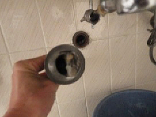 内部を確認し石鹸垢を清掃しました。
