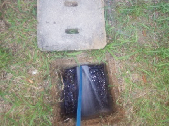 その排水管と繋がっている敷地内のマンホールから作業に取り掛かります。